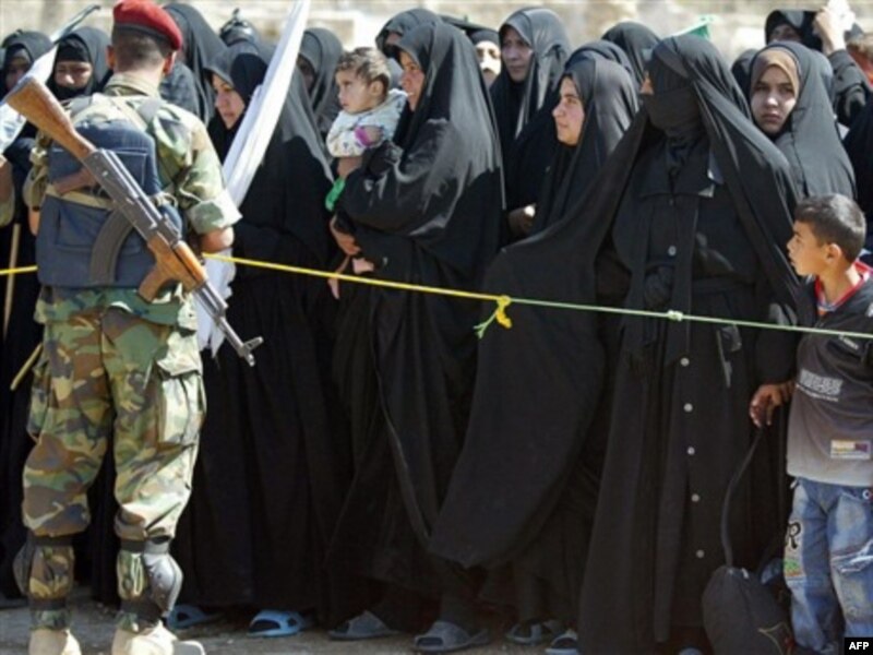 Хажжа умм Латиф айым – Кербалага кетчү жолдо зыяратчылар үчүн тамак жасайт. Эркин Европа/Азаттык үналгысынын Ирак кызматына берген маегинде Хажжа умм Латиф айым сунний Саддам Хусейндин режими кулагандан кийин шийи мусулмандардын жашоо шарттары оңоло баштаганын айтат: