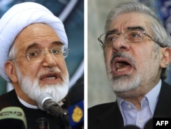 Иран оппозициясынын лидерлери Мехди Каруби(солдо) жана Мир Хусейн Мусави(оңдо).