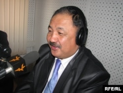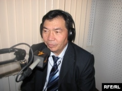 Студиянын коноктору философ, профессор Жамгырбек Бөкөшев менен тарыхчы, профессор Бектемир Жумабаев. 2010-жылдын 6-марты.