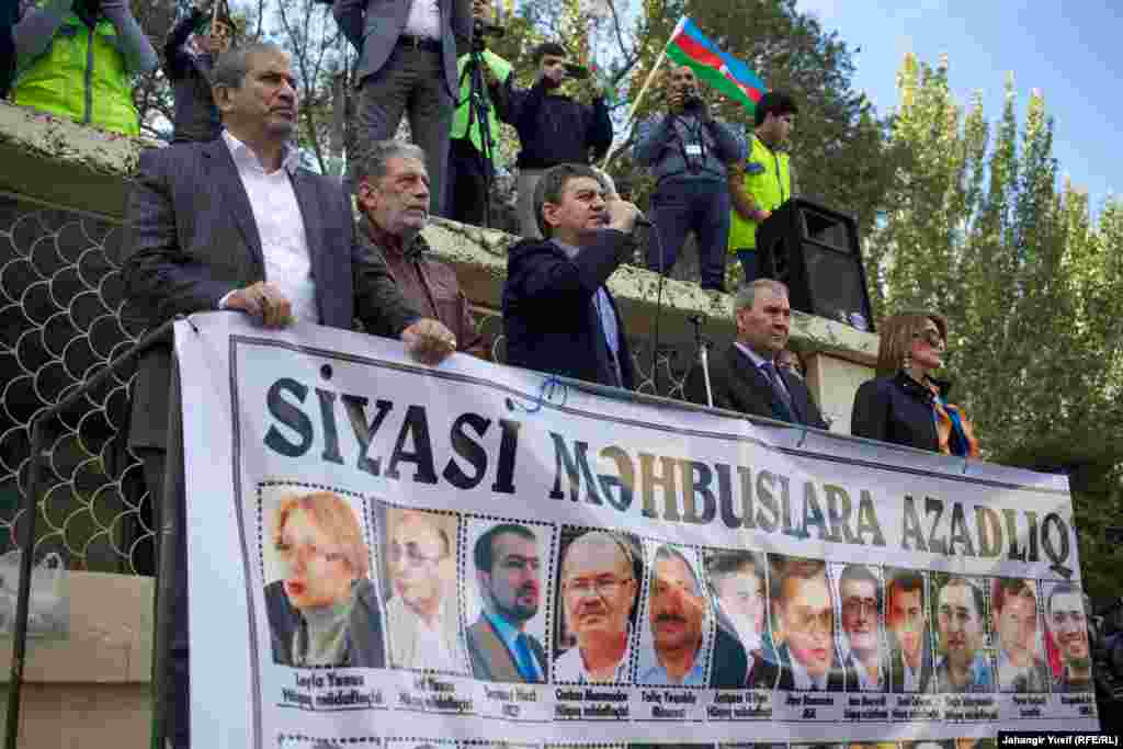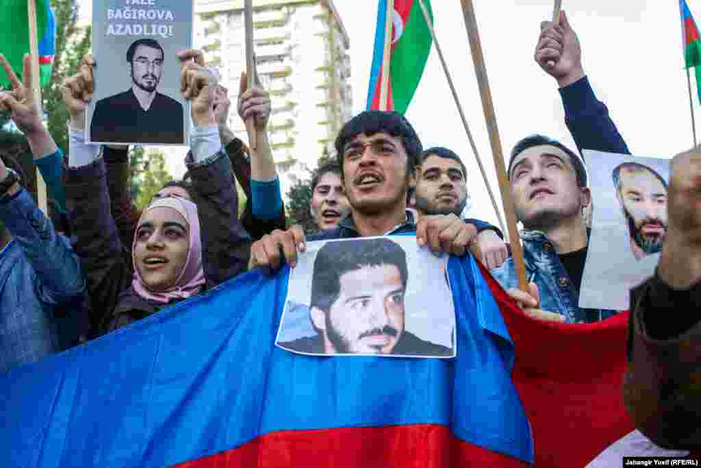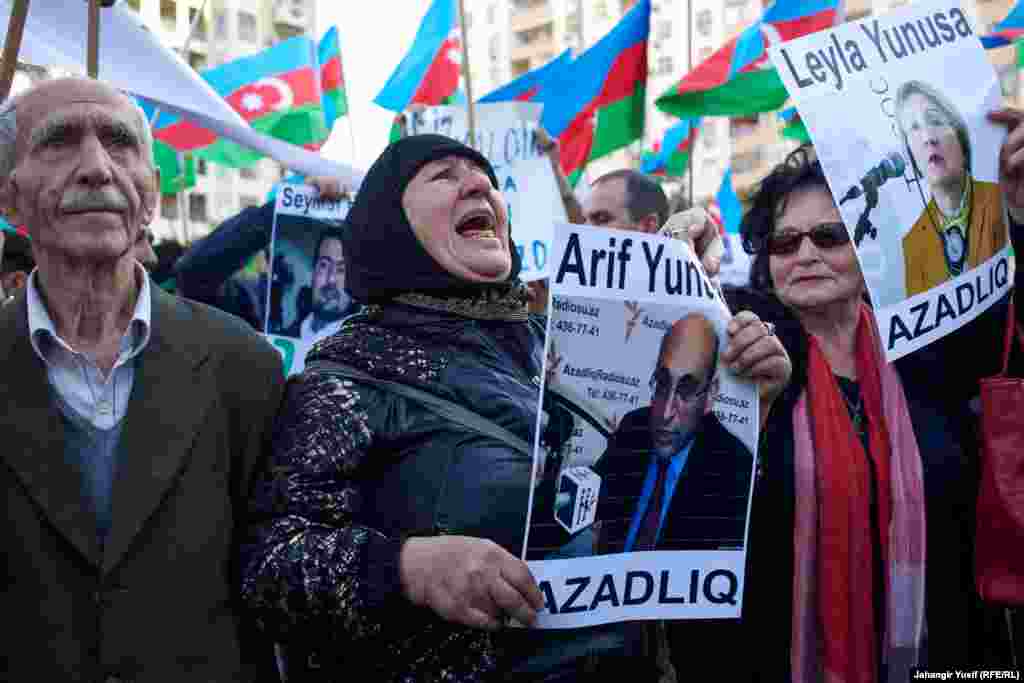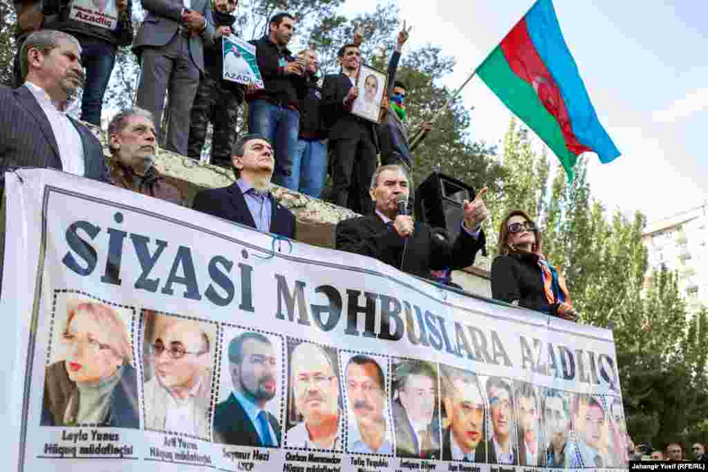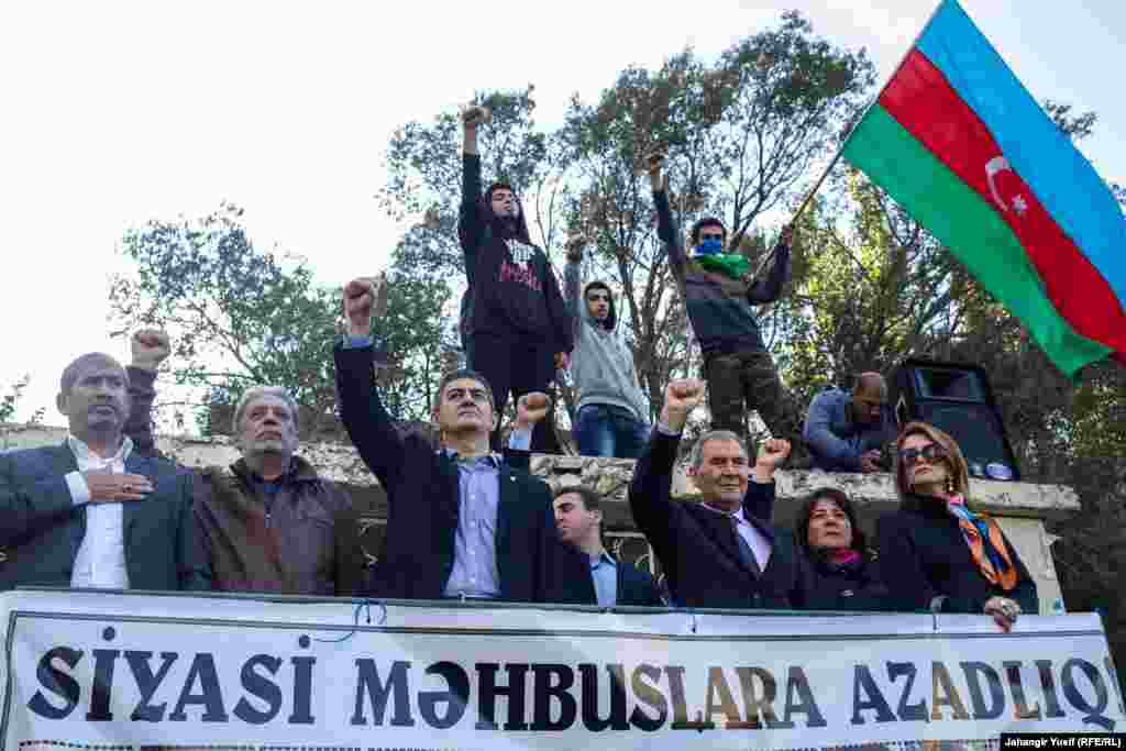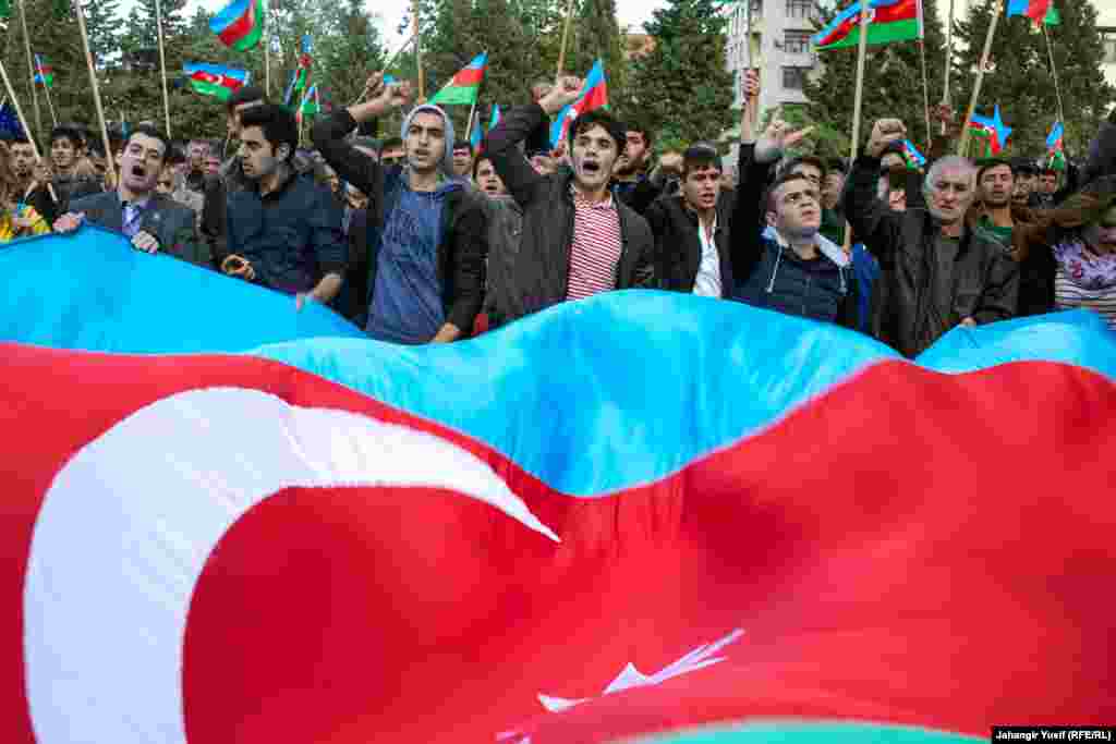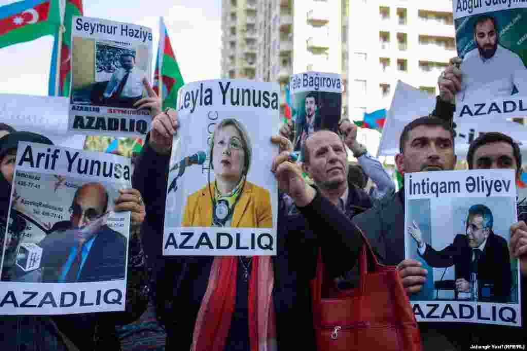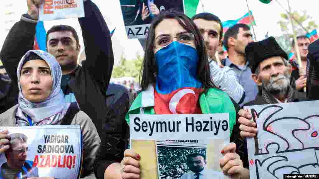 Азербайжандын ордо калаасы Бакуда президент Илхам Алиевдин кызматтан кетүүсүн жана укук коргоочулар менен жарандык активисттерди куугунтуктабоону талап кылган митинг өттү. Демонстранттар саясий туткундарды бошотууну да талап кылышты. Миңдеген адамдар катышкан акцияны Азербайжандын оппозициялык партияларын бириктирген Демократиялык күчтөрдүн улуттук кеңеши уюштурду. 12-сентябрь, 2014-жыл.