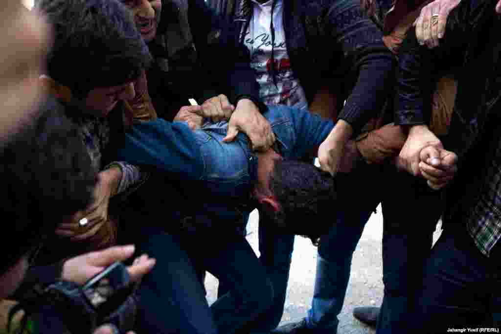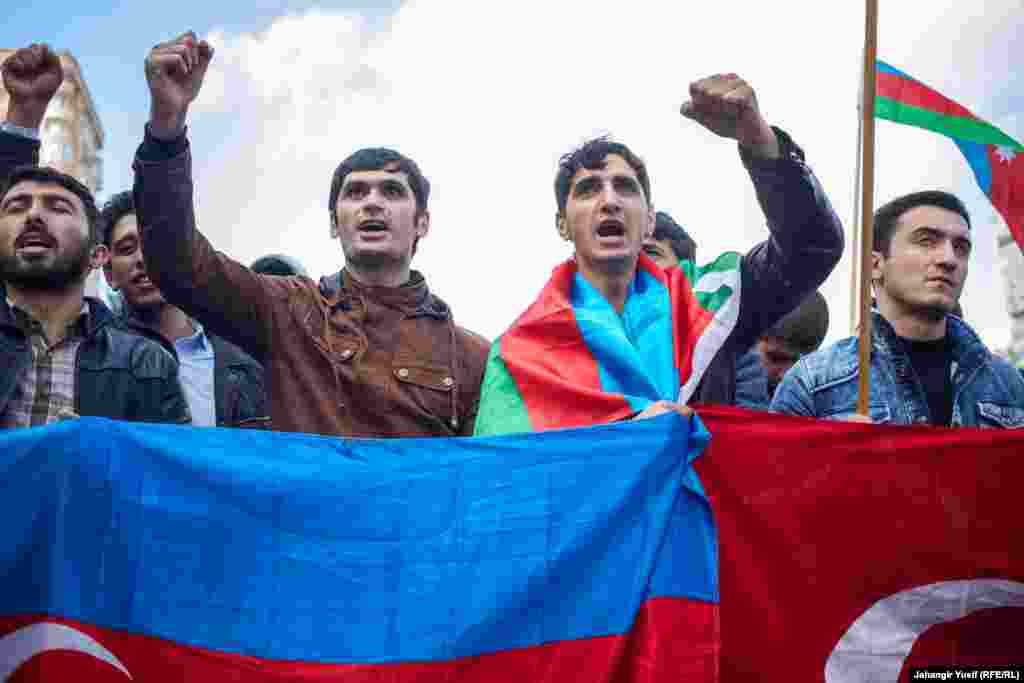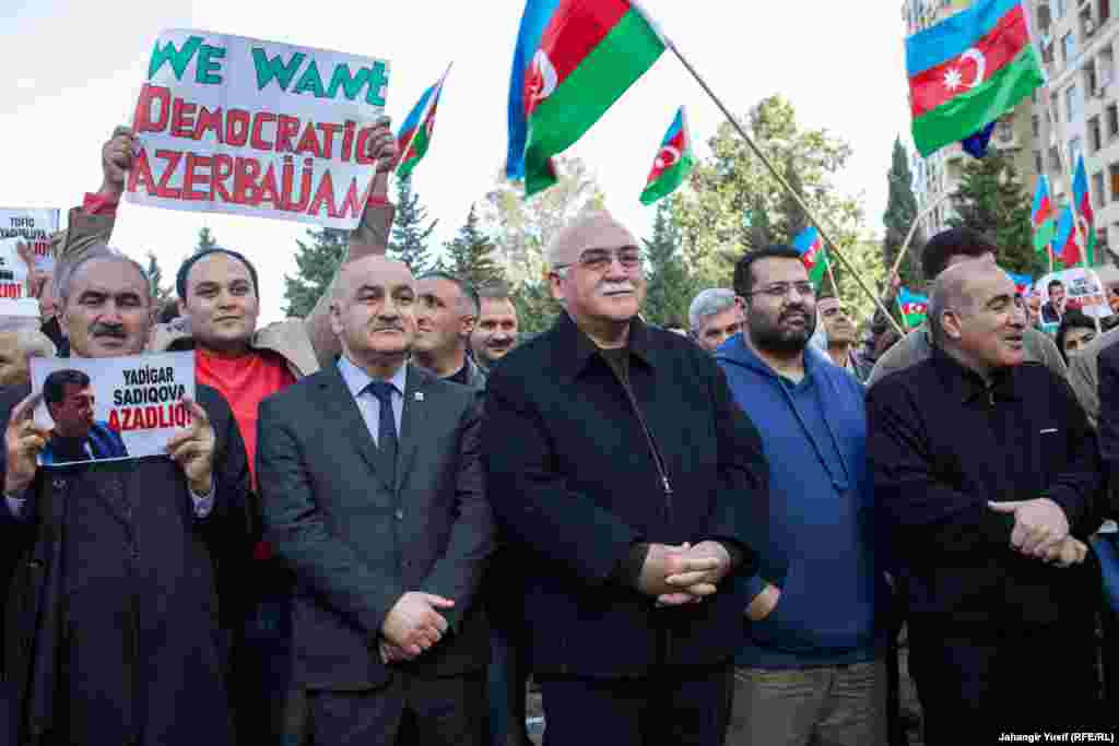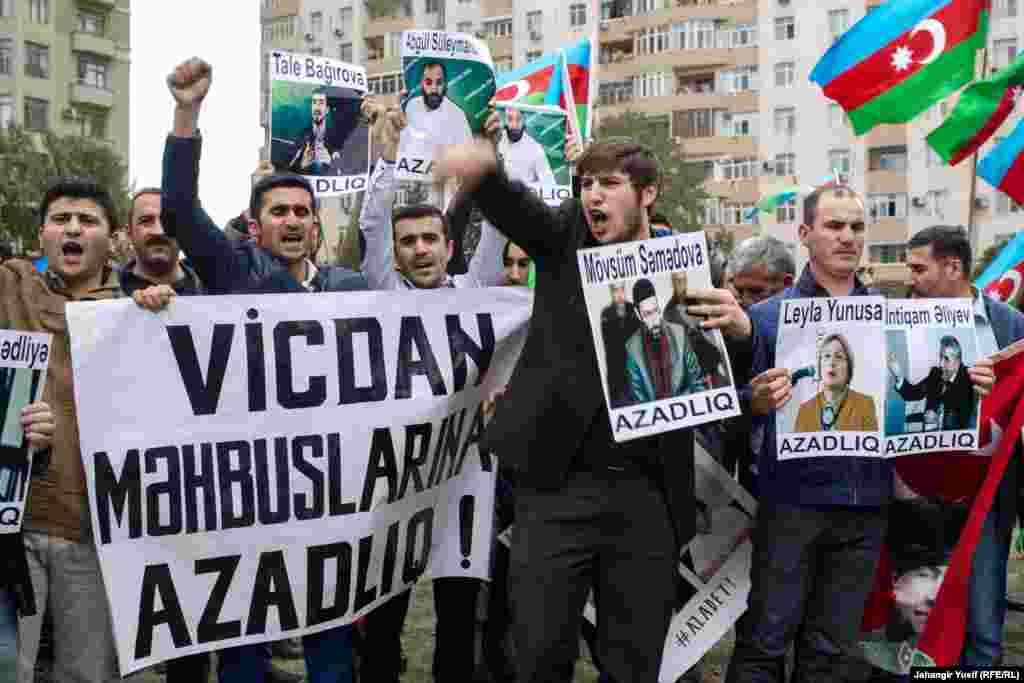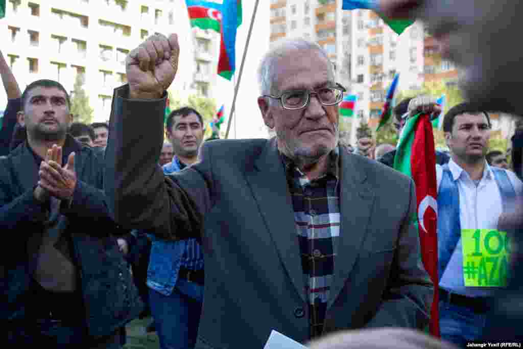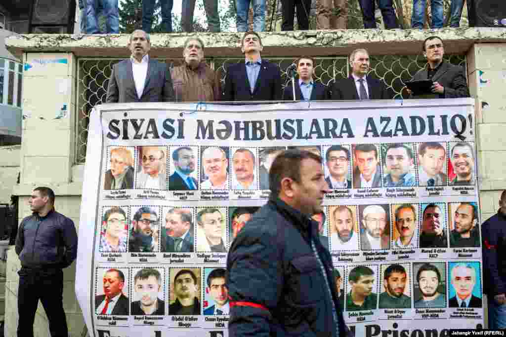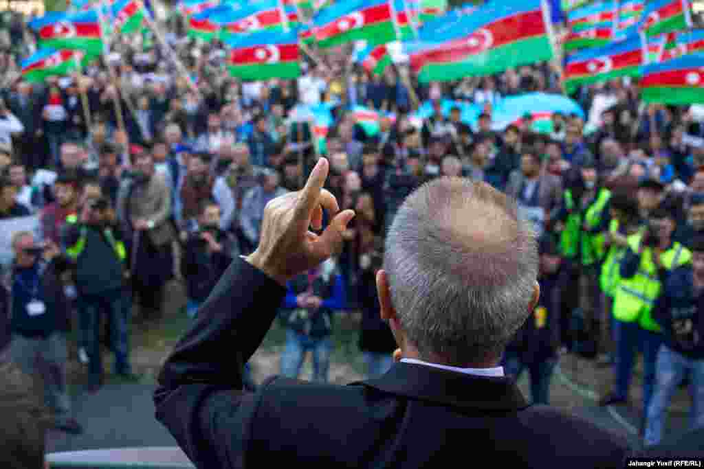 Азербайжандын ордо калаасы Бакуда президент Илхам Алиевдин кызматтан кетүүсүн жана укук коргоочулар менен жарандык активисттерди куугунтуктабоону талап кылган митинг өттү. Демонстранттар саясий туткундарды бошотууну да талап кылышты. Миңдеген адамдар катышкан акцияны Азербайжандын оппозициялык партияларын бириктирген Демократиялык күчтөрдүн улуттук кеңеши уюштурду. 12-сентябрь, 2014-жыл.