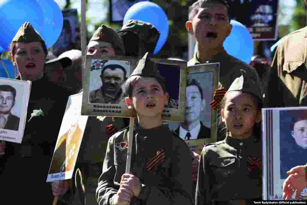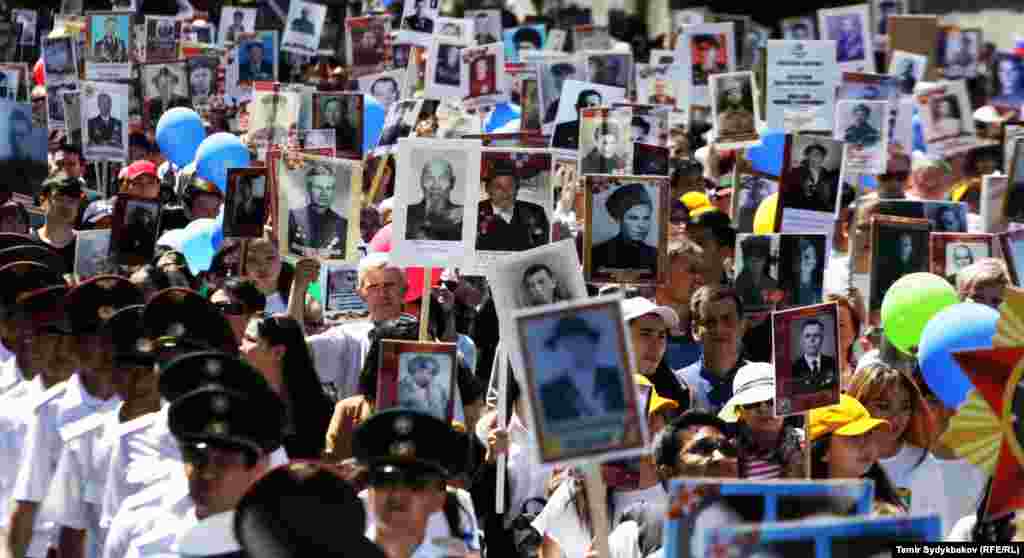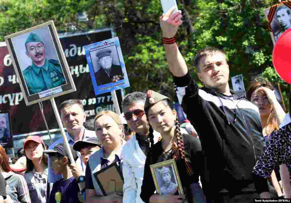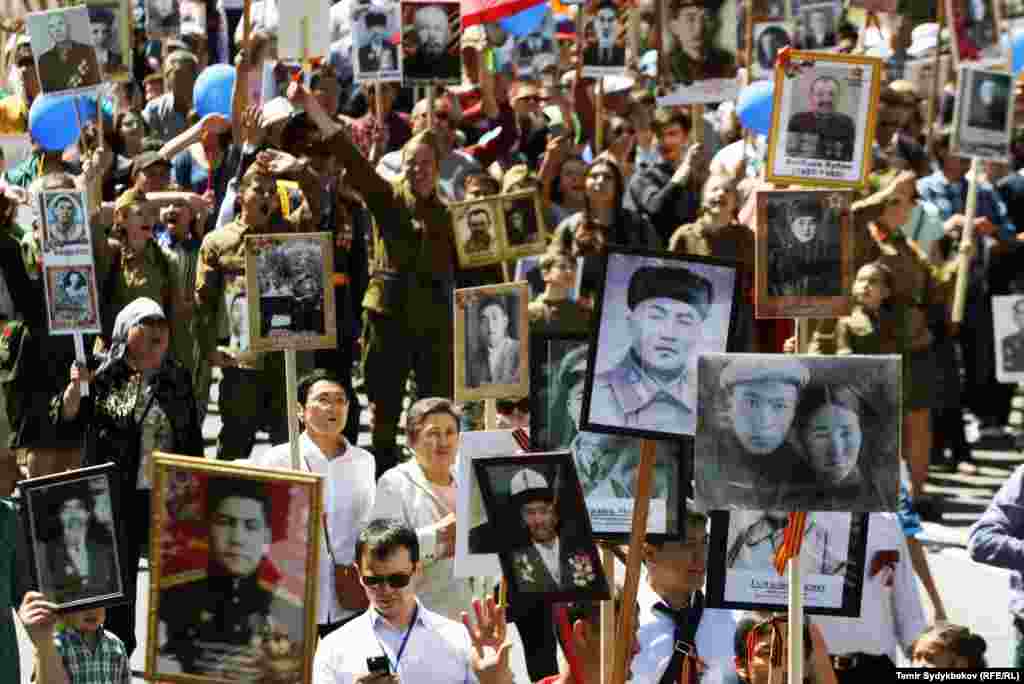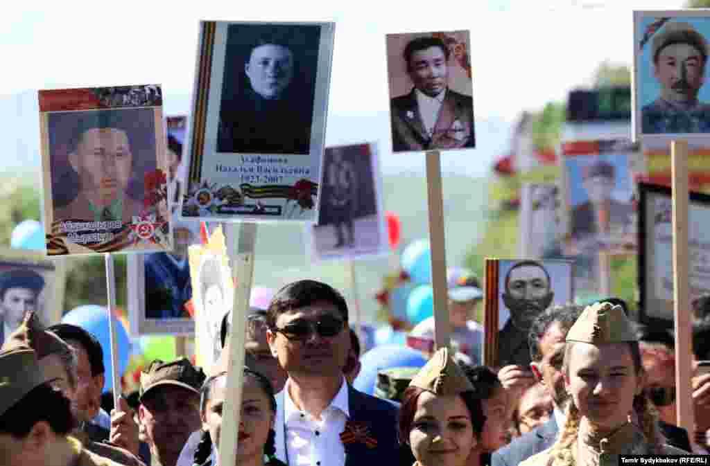 Бишкектин Түштүк дарбазасынан "Өлбөс полк" жүрүшү башталып, Жеңиш аянтында аяктады. Ага жалпысынан 30 миңдей адам катышты. Ушундай эле иш-чаралар, майрамдык параддар өлкөнүн бардык аймактарында өткөрүлдү.