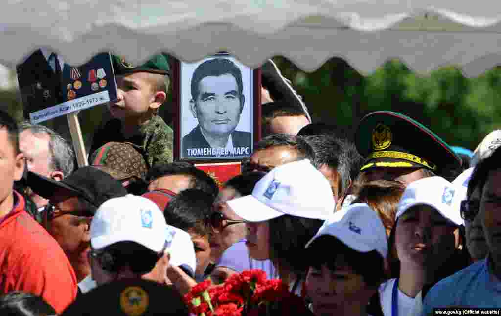 Жеңиш майрамынын 72 жылдыгына карата  Ата Мекендик согуштун катышуучуларын эскерген митинг-реквием өттү. Анда сөз сүйлөгөн президент Алмазбек Атамбаев Улуу Жеңишке кыргызстандыктардын да салымы чоң болгонун, согуш жылдары Орусия, Беларус, Украинадан эвакуацияланган жүз миңдеген адамдар Кыргызстанда камкордукка алынганын, бирок соңку жылдары Орусияда ксенофобияны, эки өлкө жана эл ортосунда кастыкты жайылткандар көп болуп жатканын белгиледи.
