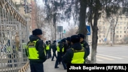 Ички иштер министрлигинин алдында иликтөөчү журналист Болот Темировду бошотуу талабы менен тынч митинг өтүп жаткан жерге милиция кызматкерлери топтолууда. "Азаттыктын" кабарчылары маалымдагандай, ал жерден күч кызматкерлеринен тышкары милициянын атайын жеңил автомашиналарын да көрүүгө болот.