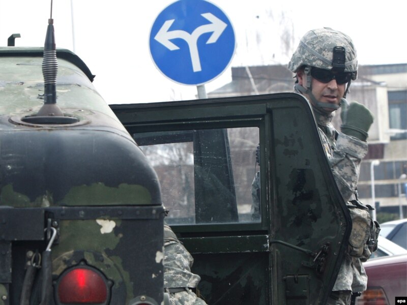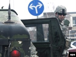 НАТОнун курамындагы америкалык жоокерлер Витина шаарчасында черүүдө. Косово. 24-март 2009
