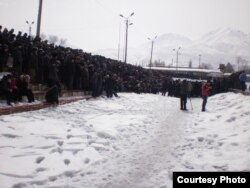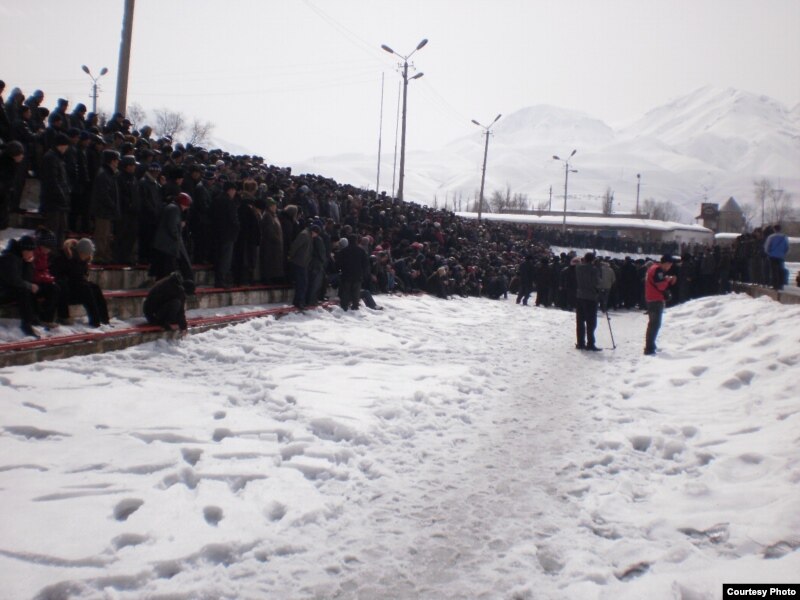 Жергиликтүү бийлик мындай жөрөлгөнү тескери кабылдап, мектептерде жарандык окууларды өткөрүп, «атайын» тапшырмаларды тага башташты. Бирок тутанган от капчыгай ичиндеги шаарды аралап, калк катмарына сиңе баштады. Акыры 24-февралда базарларда соода кылгандар өзөгүн түзгөн катмар менен бирдикте жүздөгөн адамдар шаардын сырт тарабындагы гүлчамбар аянтына тизесинен кар кечип, талаптарын айтууга чогулушту. Эл алдына облустук жетекчиликтен жан адам басып барган жок.