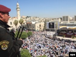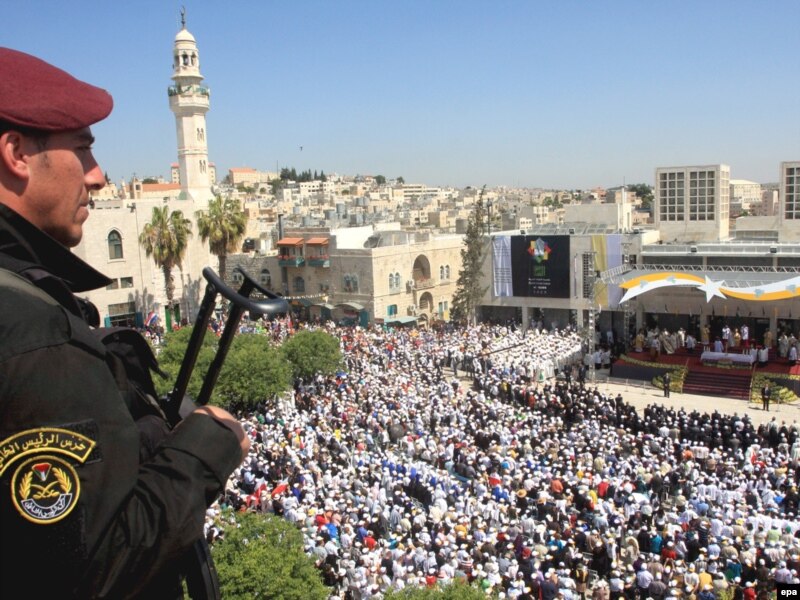 Папа Бенедикт XVI-нын сөзүн угуу үчүн Вифлеемдин борбордук аянтына чогулган эл.13-май 2009
