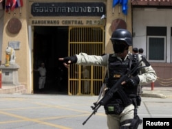 Эми эле камакка алынган Виктор Бутту Тай полициясынын гражданча кийинген офицерлери түрмөгө алып баратышат. 6-март 2008
