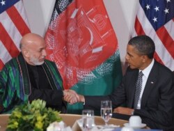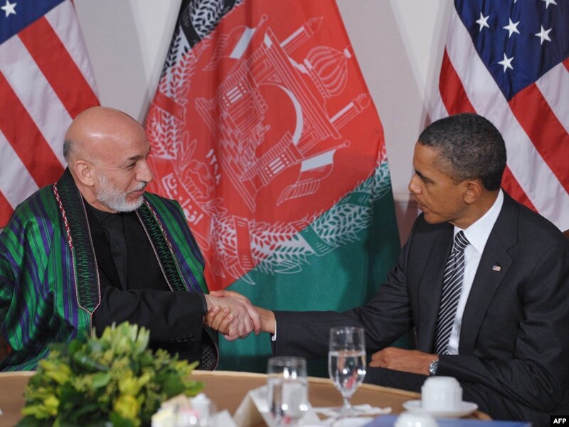 Ооган президенти Хамид Карзай жана АКШ президенти Барак Обама Нью-Йорктун "Waldorf Astoria" мейманканасындагы кездешүү учурунда. 20-сентябрь 2011