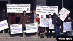 28-ноябрда академиянын башкы имаратынын алдына кыскарган институттардын өкүлдөрү “Илимди жоготпогула!”, “Кыскартууну талкалоо менен айырбаштабагыла!” деген өңдүү жазууларды көтөрүп чыгышты. Нааразы тарап академия жетекчилигинин аракеттерин кыскартуу максатын көздөгөн жасалма реформа деп баалашууда.