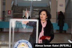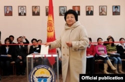 Президент Роза Отунбаева Бишкек шаарындагы №1215 шайлоо участогунда добуш берди. Ал бул күндү тарыхый күн катары сыпаттап, "жалпы Борбор Азияга үлгү көрсөткөндөй иш жасап жатабыз" деп айтты.