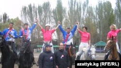 Бишкектеги ат спорту мектебинин мелдеш аянтында Европада белгилүү хорсбол оюну боюнча Кыргызстан менен Франциянын командалары ортосунда жолдоштук беттешүү болду.