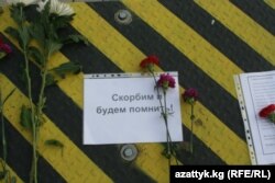 Жаңы-Өзөндөгү башаламандыкта мерт болгондорду эскерүү үчүн чогулгандар бейажал набыт болгондордун ысымдарын аташып, 1 мүнөт аза күтүштү.