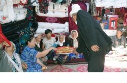 Муктар Өмүрбек кыз узаткан ырды ырдагандан кийин боз үйгө кирип, кудагыйларга боорсок сунду