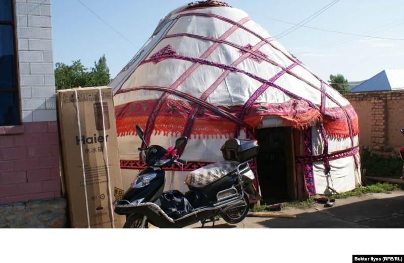 Боз үйдүн кире беришинде үйгө батпай калган калдайган ала кийиз менен Кытайдын кымбат баалуу кир жуугуч машинасы, ошондой эле кыздын ата-энеси кызына ат ордуна мингизген электр менен жүргөн мотоцикл турду. Ал эми боз үйдө жык-жыйма жасалганын чок ортосунда «Манас» китептери коюлду.