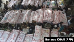 Хазари азчылыгы өкмөттөн акыркы беш жылда алардын бир миңдей өкүлүнүн өмүрүн кыйганы үчүн жоопкерчилик алган "Лашкар-е-Жангви" тобуна каршы чара көрүлүшүн талап кылууда. Нааразылык иретинде алар 16-февралда набыт болгон өкүлдөрүнүн сөөгүн жерге бербей жатышат.
