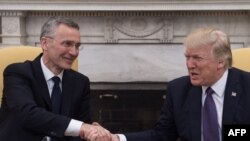 Трамп шайлоо кампаниясы маалындагы сөздөрүнөн кайтып НАТО “эскирген уюм болбой калды” деп билдирди жана анын терроризмге каршы аракеттерин кубаттап, блоктун мүчөлөрүнө Сириядагы базага соккуларды колдогону үчүн ыраазычылык айтты: