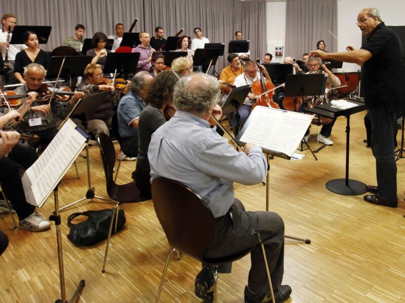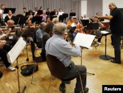Израилдик камералык оркестрдин дирижеру Роберто Патерностро (оңдо) өз тобу менен Бавариянын Байрөйт шаарында репетиция маалында. Reuters. 24.7.2011.